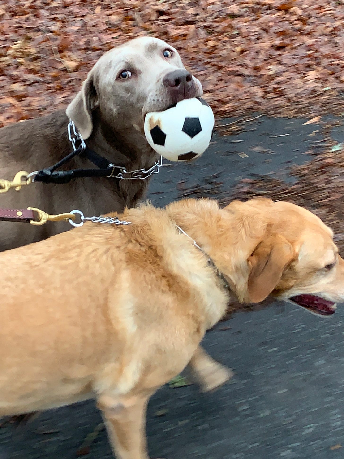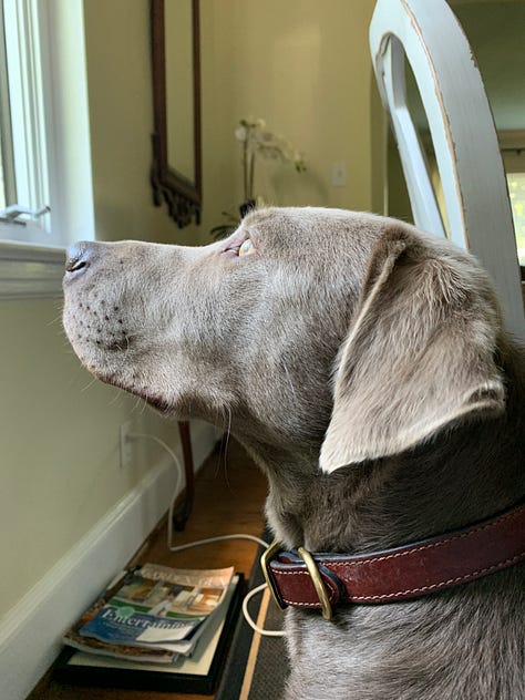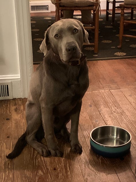 My crunchy cup of kibble? Cue my happy human’s unmistakable whistle and his upbeat: “PUPPIES ARE READY FOR SOME DIN-NAHS?!!!!” and my Pavlovian, show-dog response kicks into high-jump gear. Next to hearing a key in the front door, it is the highlight of my day. 6 a.m. 6 p.m. (I can also tell time.)